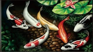 Acrylic on canvas. Lukisan Ikan Koi ini menggunakan cat akrilik dengan media kanvas dari gallery sendiri. Maaf gays, lukisan ini direkam saat udah jadi bukan ...