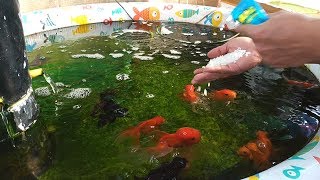 Ketika hujan deras, ph air akan berubah menjadi asam. Dan tidak sehat bagi ikan. Solusinya adalah dengan menambahkan garam ikan.