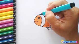Menggambar ikan nemo atau yang terkenal dengan nama ikan badut dan mewarnai untuk anak. #Ikan nemo.