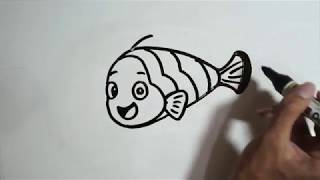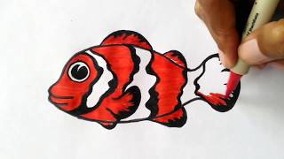 - ikan nemo air tawar belajar cara menggambar dan mewarnai-how to make drawing and coloring video fish
