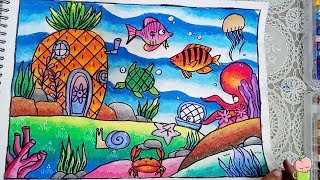 - Cara Menggambar dan Mewarnai Pemandangan Dasar Laut - Gradasi Warna Oil Pastel