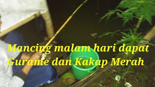 Mancing malam hari di kolam Saung Paniisan Abah Manaf Al Kahfy dapat ikan Gurame dan Kakap merah.