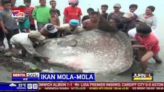 Seekor ikan mola-mola terdampar di Pantai Talise, Teluk Palu, Kelurahan Kampung Lere, Sulawesi Tengah. Saat ditemukan, ikan raksasa ini masih hidup.