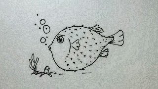 - Cara sederhana menggambar Ikan Buntal untuk anak2 |gambar sketsa