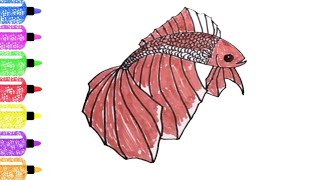 Cara menggambar dan mewarnai ikan cupang giant untuk anak-anak.